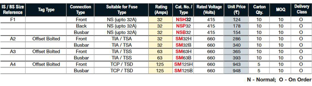 Fuse Fittings For LV BS Type
