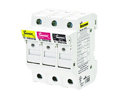 The ‘CH’ line of modular fuse holders accommodates many fuses from around the world, including North American Class-CC, Midget, Class gR, aR HSF, and IEC Industrial Ferrule (Class gG and aM) in four physical sizes: 8x32, 10x38, 14x51 and 22x58mm.